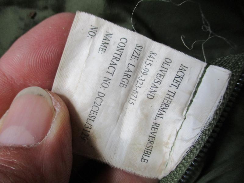 CONDITION = VINTAGE OER 22 YEARS OLd NOW . it has soldiers name on green side lower front which isnt to noticable when worn some dark staining on sleeve and lower front shown in pictures and on desert side black stain mark on front and has had same soldiers name in pen on back now penned over , this si all i can see on it , zips all ok and no holes rips etc would still make a great field jacket / warm kit ..AS IN PICTURES THINK THEY SAY IT ALL PLEASE STUDY