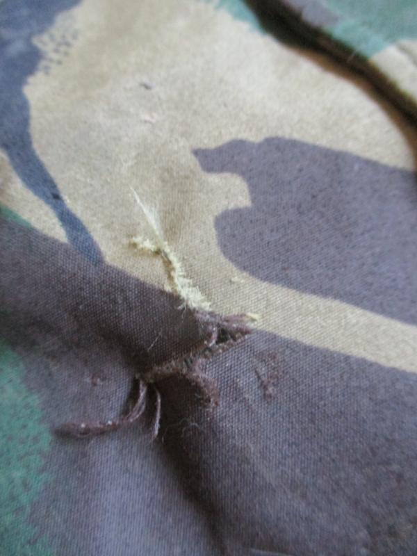 condition = i think the 24 pictures show condition best , ONE SMALL HOLE ON TOP RIGHT POCKET WHICH COULD BE SEWN IF YOU SHOOSE TO DO SO . INNER LINNER HAS BEEN TORN RIPPED AND SEWN REPAIRED WITH DPM MATERIAL . STILL A VERY RARE SMOCK AND DISPLAYS WELL IN A COLLECTION . AS IN THE PICTURES PLEASE STUDY EM ALL !!