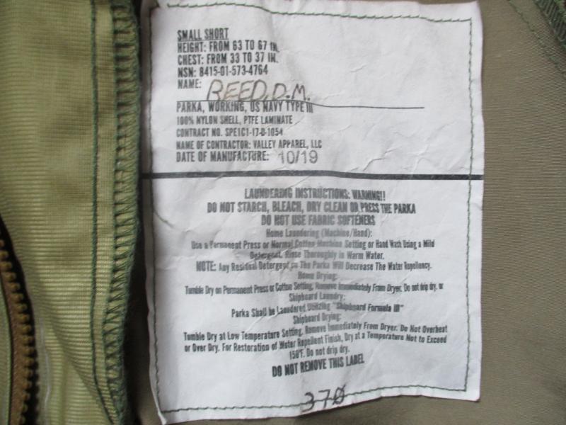 100% GENUINE US NAVY TYPE 3 waterproof breathable EWCWCS ECW PARKA WITH ISSUE LABEL inside it .