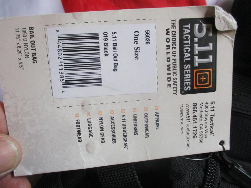 5.11 Tactical 511 BAIL OUT battle BAG 9L 1050D Denier Nylon Molle BLACK NEW