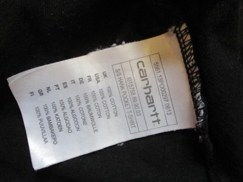 CLASSIC FRONT SMALL CIGGARETTE PACKET SIZE CHEST POCKET WITH THE CARHARTT LOGO ON IT . LABEL ON INSIDE