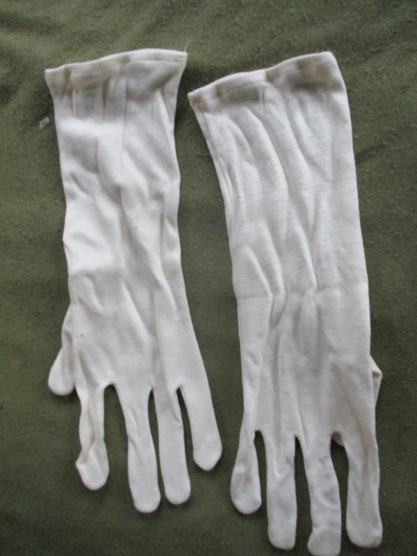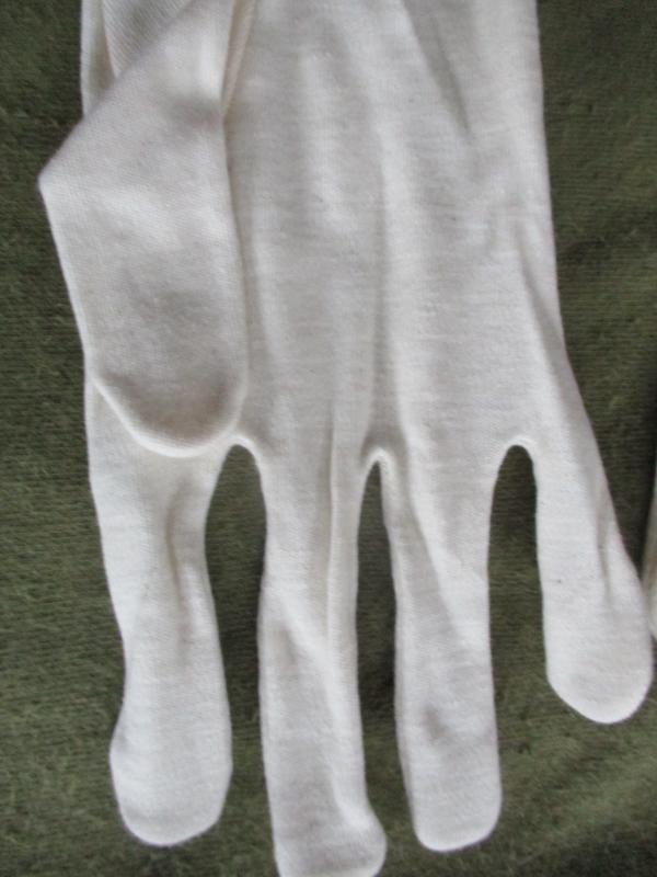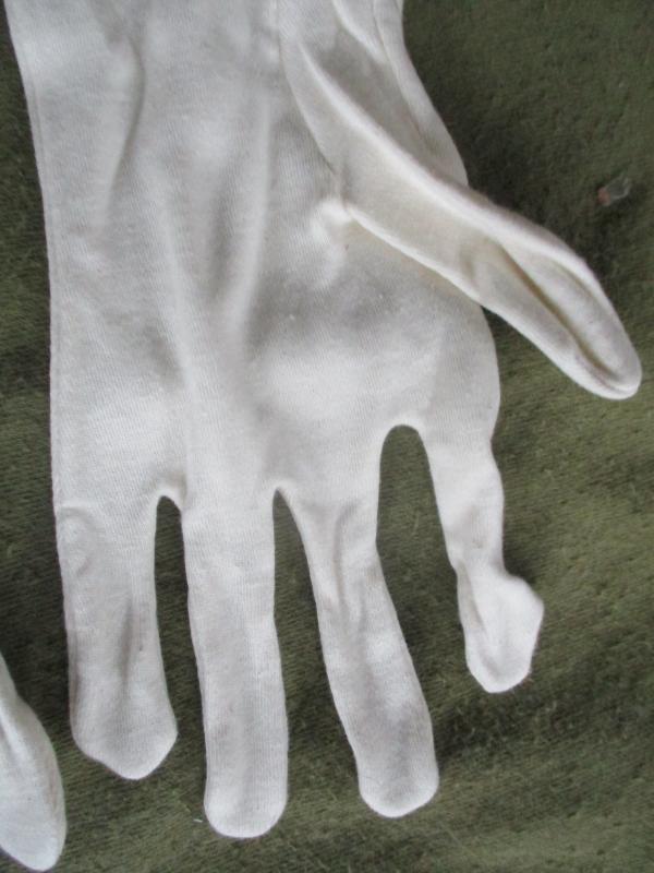 MADE FROM SOFT FEEL COTTON ..WHITE ...IDEAL AS A DRILL PARADE GLOVE ...OR INSTRUCTORS INSPECTION GLOVE ON BLOCK / ROOM INSPECTION ...OR IDEAL AS A ANTIQUES HANDLING GLOVE OR MILITARIA GLOVE SO NO FINGER PRINTS LEFT ON EXPENSIVE BLADES ON SWORDS OR DAGGERS OR MEDALS ETC