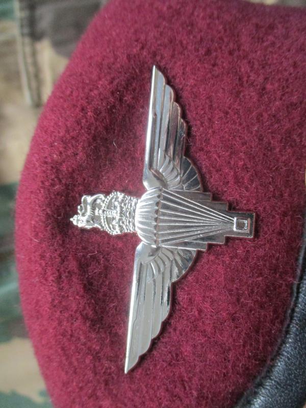 THIS IS THE GENUINE issue LEATER BAND MAROON PARACHUTE REGIMENT AIRBORNE MAROON BERET AND CAP BADGE .... THE WORLD FAMOUS MAROON BERET SYMBOL OF AIRBORNE FORCES