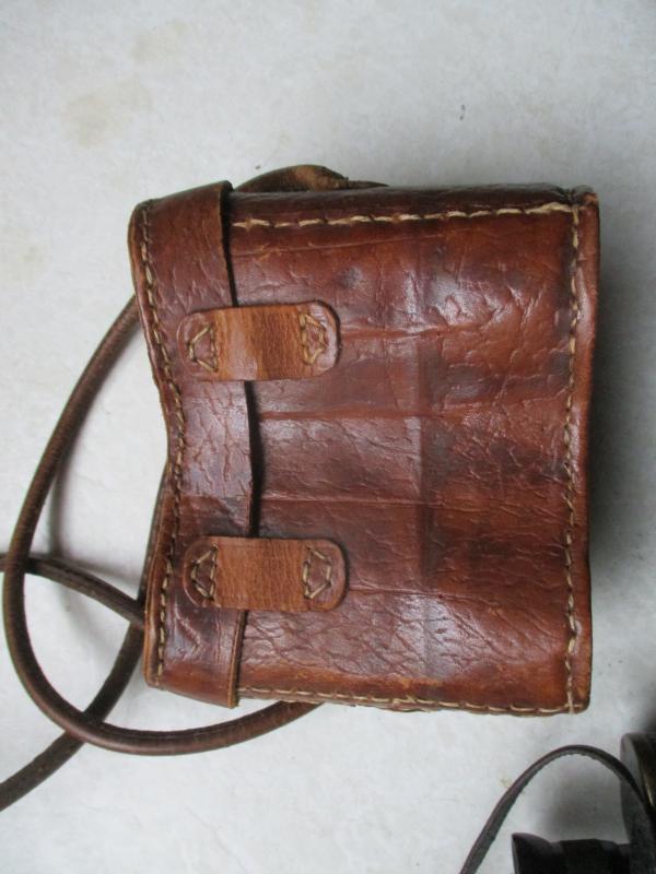 BLACK PAINTED / EARLY WAR TO END OF WAR .. a real nice pair n look to them . AND HAVE WHAT LOOKS LIKE A CUSTOM OFFICERS MADE LEATHER CARRY CASE , HAS TYPICAL GERMAN STITCHING TO IT AND SOFT LEATHER AND A STUNNIG SHOULDER STRAP ...DISPLAYS GREAT ON A OFFICER MANNEQUIN OR IN COLLECTION