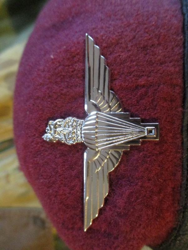 THIS IS THE GENUINE issue LEATHER BAND MAROON PARACHUTE REGIMENT AIRBORNE MAROON BERET AND CAP BADGE .... THE WORLD FAMOUS MAROON BERET SYMBOL OF AIRBORNE FORCES