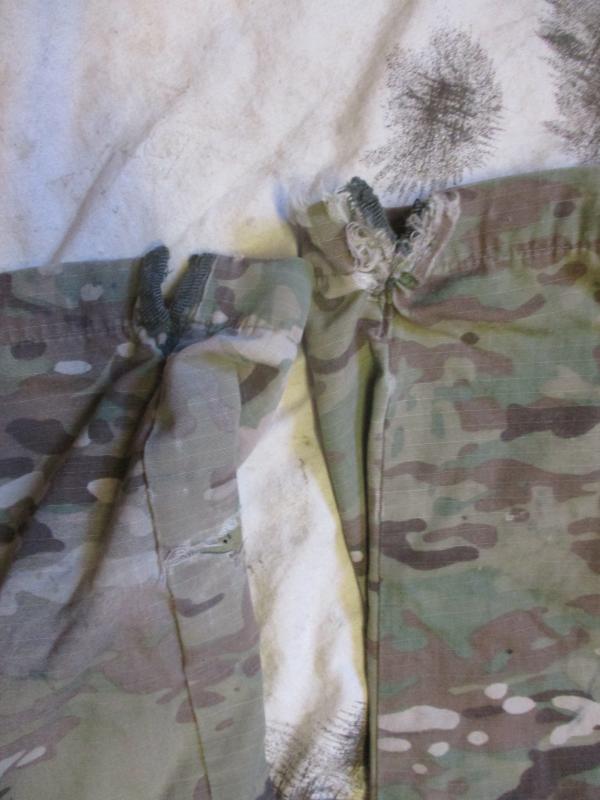CONDITION = WORN USED PAIR , EXTRA BUTTONS EWN ON WAIST BAND TO FIT BRACES SUSPENDERS TO EASY TO REMOVE IF YOU WANTED TO , WAIST BUTTON MOVED ALONG FOR BIGGER WAIST , ONE HOLE RIPS ON SIDE OF CARGO POCKET WHICH HAS BEEN PATCHED REPAIRED ON INSID AND 1 ON SIDE OF DOUBLE THICK KNEE AREA WHICH WILL BE OK AS ITS DOUBLE THICK . WEAR ON INNER SIDES ANKLE AREA FROM BOOTS RUBBING SHOWN IN PICTURES . STILL GOOD PANTS AND GERTTING HERDER TO FIND G3'S NOW . AS IN THE PICTURES STILL REAL GOOD PANT /