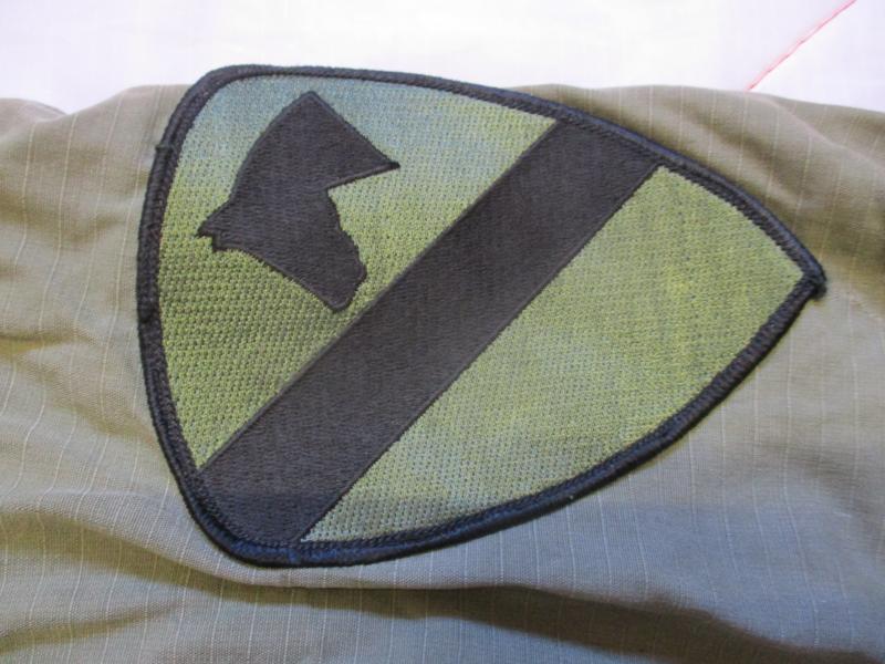 INSIGINA = i think all has been re applied not original to coat = U.S.ARMY CHEST TAPE webbing type A 1ST AIR CAV DIVISION PATCH AND 101ST AIRBORNE DIV PATCH LESS AIRBORNE TAB . NO NAME TAPE AND NEVER HAD ONE ON IT .