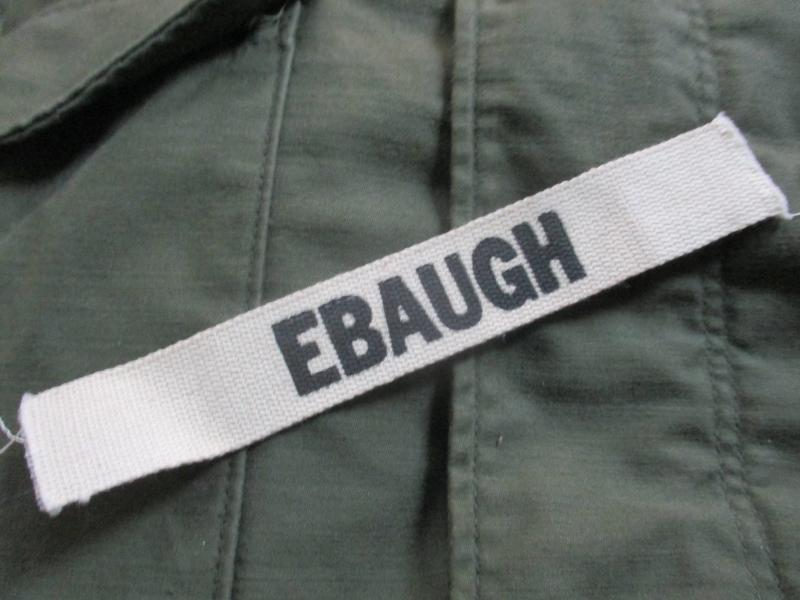 GENUINE M51 UNIFORM early VIETNAM WAR US ARMY white name TAPE badge EBAUGH