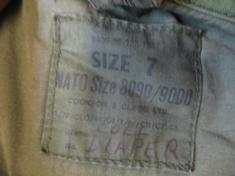 EARLY ONE WITH THE PALE GREEN BUTTONS AND EARLY CODE ... IN THE ORIGINAL 1968 DPM CAMO PRINT ...NOW KNOW AS PALE DPM , DPM WITH DOTS TO COLLECTORS