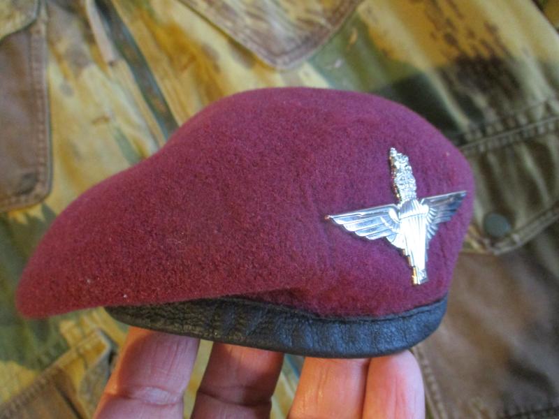 THIS IS THE GENUINE issue LEATHER BAND MAROON PARACHUTE REGIMENT AIRBORNE MAROON BERET AND CAP BADGE .... THE WORLD FAMOUS MAROON BERET SYMBOL OF AIRBORNE FORCES