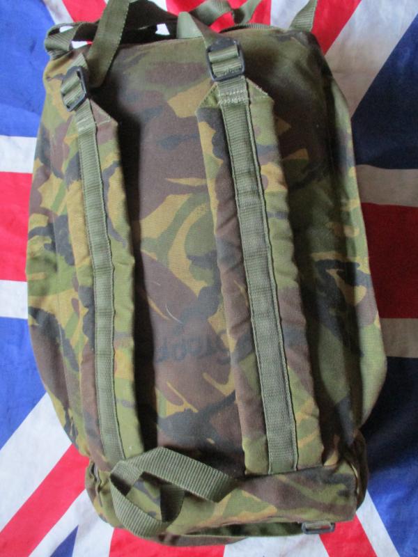 FEATURES = BEST DESIGN AROUND ! ideal for fight light / airborne operations ..SIMPLE BUT EFFECT DESIGN WITH 30 LTR MAIN BODY AND 2 PADDED SHOULDER STRAPS, PADDED BACK ,2 SIDE ZIPS TO FIX PLCE BERGEN POUCHES TO , has inner pocket on lid and 1 outer lid pockets . loops to fit a roll mat to on lid , no frame in it so can be rolled up folded etc if not in use . folds up small if not in use so ideal as back up kit in your bergen . waist belt , ALSO IDEAL FOR MODIFYING WITH MOLLE ON FRONT N LID AND JUNGLE MESH SIDE POCKETS and molle loops on front IF YOU WANTED TO .