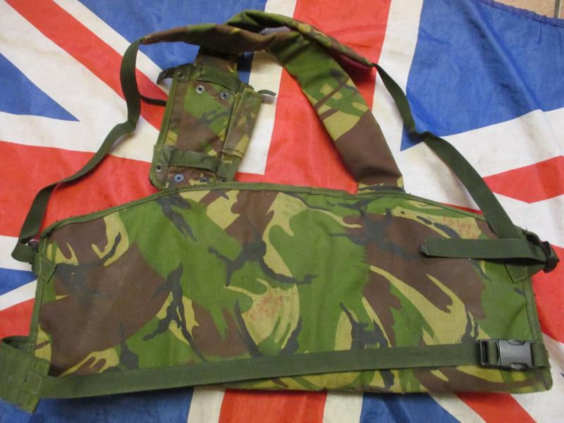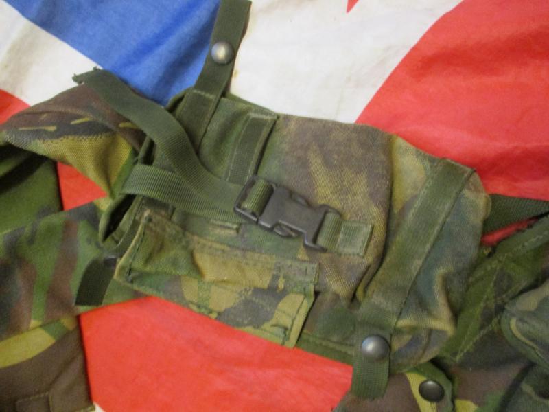 FEATURES = BEST DESIGN AROUND ! ideal for norway arctic deployment and skiing with , mobility troops , armoured troops , sf used , urban ops / WW3 TRECH CLEARING - FIGHTING the lot !! = ITS THE original BRITISH ARMY ISSUE CHEST RIG WITH 3 TRIPLE 556MM MAG POCKETS VELCRO AND FASTEX CLIP flap lid CLOSURE , 2 LARGE 58 WATER BOTTLE SIZE UTILITY POUCHES WITH SLOT OPEN TOP POCKETS BEHIND THEM AND GROMIT HOLES TO TIE ITEMS OFF TO , FULL SIZE REAR POCKET , PADDED ADJUSTABLE SHOULDER STRAPS AND LEFT ONE HAS STUDS TO FIX A RADIO POUCH TO , ADJUSTABLE WAIST BELT , AND PLCE BELT PART TO ADD POUCH TO OR BAY0NET FROG OR HOLSTER TO