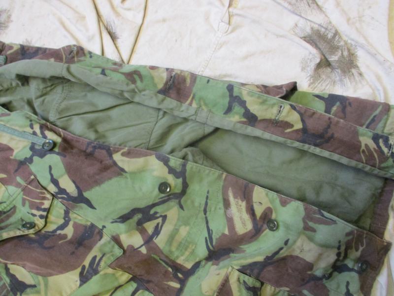 CONDITION = ITS HAD ZIP REMOVED SO ONLY BUTTON CLOSURE NOW , AND IM SHURE SLEEVES MADE SHORTER . SOME DARK MARKS IN PLACE WHICH FIT IN WITH CAMO AND LIKE A GLUE MARK ON SLEEVE . INNER TAIL FLAP BUTTONS HAVE BEEN TAKEN OUT .DRAW CORDS REMOVED