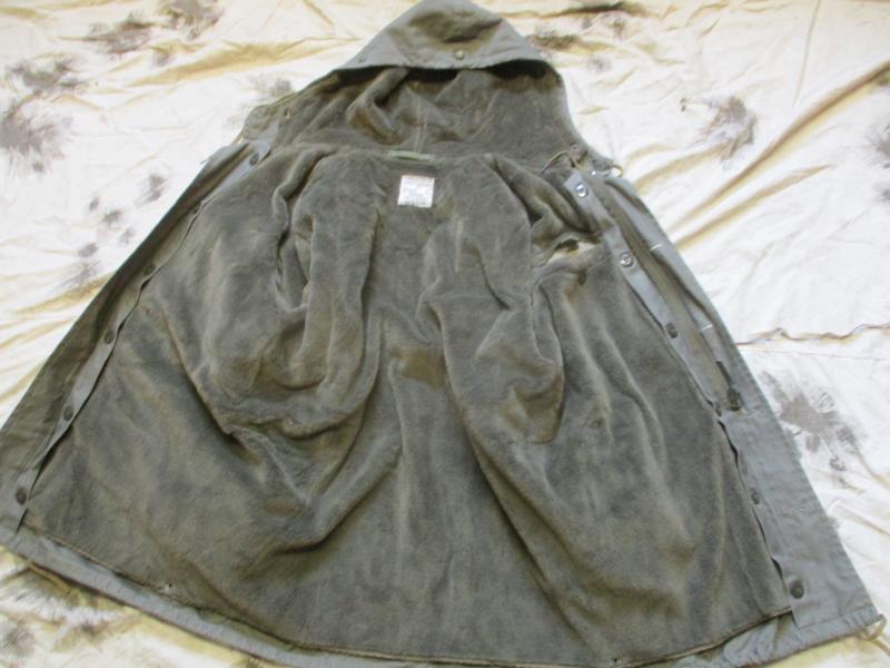 condition = LOOKS LIKE NORMAL worn used its a vintage army parka ALL I CAN SEE IS SOME SMALL WHAT LOOKS LIKE PAINT MARKS ON CUFF ENDS UNDER SIDE SHOWN IN PICTURES THIS MIGHT SCRAPE OFF I HAVE NOT TRYED IT . MADE IN 1984 ( DATED 1984 on label stamp ) no holeS rips etc