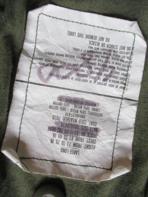 ITS THE COAT IS DATED MADE IN 1987 = DBA103-87-614 IT STILL LOOKS LIKE A VIETNAM WAR ONE FROM THE OUT SIDE SAME MATERIAL AND COLOUR JUST MADE IN 1987