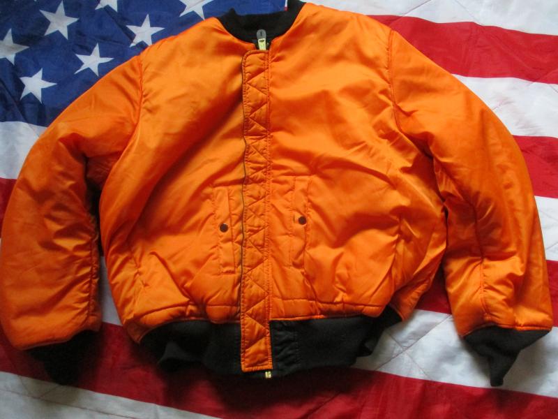 FEATURES = THE CLASSIC MA1 AMERICAN AIR FORCE PILOTS JACKET THE FAMOUS MA-1 BOMBER / PILOT / AVIATORS JACKET ,IT HAS 2 HAND POCKETS , KNIT WAIST BAND AND CUFFS AND COLLAR .2 INSIDE POCKETS . REVESABLE FROM GREEN TO HI VIZ ORANGE FOR DOWNED PILOTS TO BE SEEN AND RECOVERED . A REAL CLASSIC ICONIC JACKET