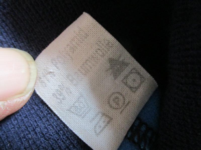 SIZE = NO SIZE O IT , ITS LIKE A MEDIUM TO LARGE but please go off the measurements IT MEASURES 23" OR 56CM ARM PIT TO PIT/ 21" PIT TO CUFF END / 20 1/3" ACROSS BELLY AREA / / 27" BASE OF COLLAR TO HEM .... COLOUR = NAVY BLUE AND SKY BLUE