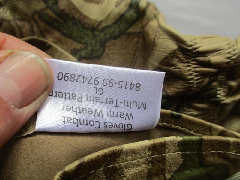 WITH WRIST ELASTIC AND ADJUSTER STRAP FOR FIT AND PADDED KNUCKLE AREAS FOR PROTECTION , WITH NSN NUMBER AND ISSUE LABEL