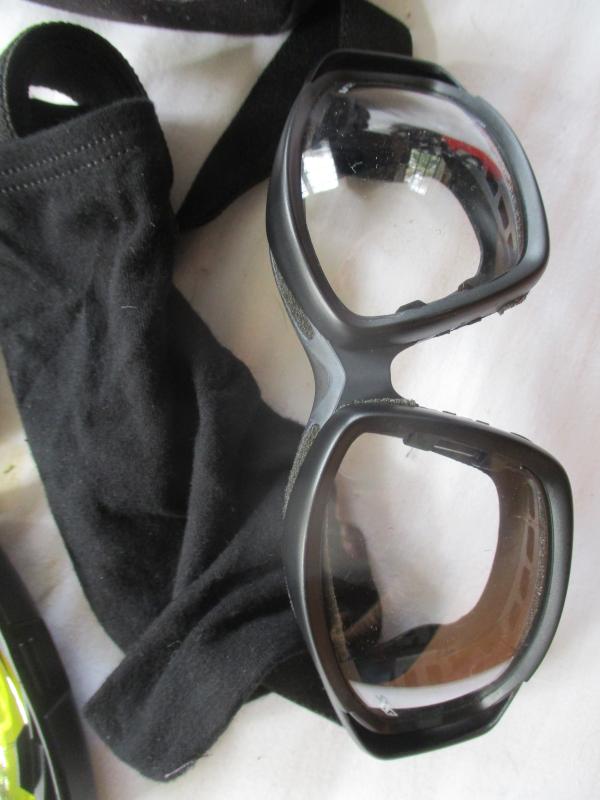 THE V12 COMBAT GOGGLES = THEY HAVE ADJUSTABLE HEAD STRAP AND LENS PROTECTIVE COVER TO STOP SUN GLARE OF LENS WHEN NOT WORN AND THIS CAN BE POLISH CLOTH AS WELL , 2 SPARE LENS IN POD , BLACK , YELLOW AND CLEAR . AND COME WITH A PROTECTIVE CASE for the ess V12 COMBAT GOGGLES WITH 2 VELCRO OPENING BELT LOOPS THAT VELCRO TO FIT ON MOLLE LOOPS AND PLASTIC SNAP HANGER CLIP . ONE MAIN COMPARTMENT AND 2 SMALLER ONES TO HOLD LENSE PODS IN