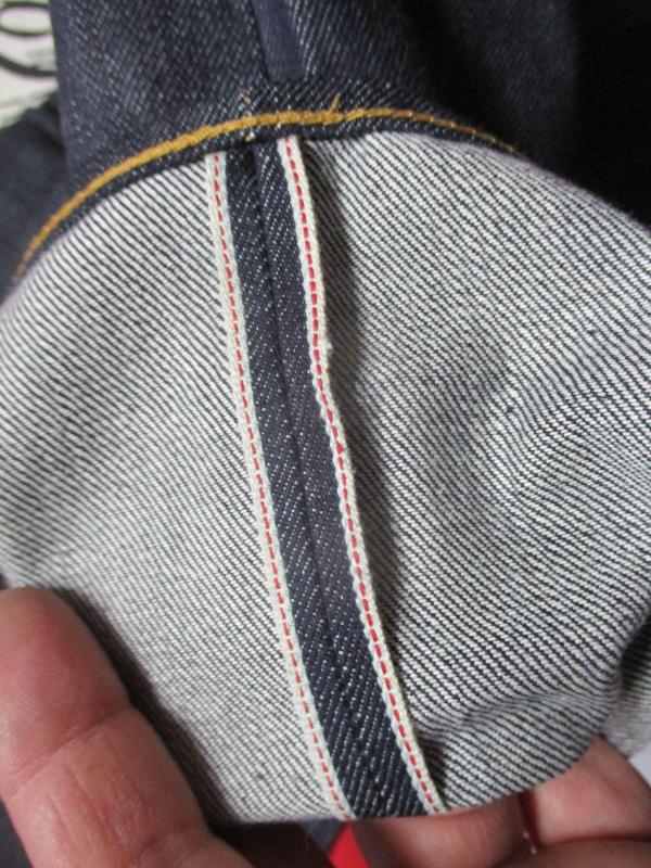 IN THE CLASSIC RED LINE SELVAGE NATURAL RAW DENIM ..ID SAY CLASSIC 14OZ WEIGHT .( as you know always best to wash inside ourt in bath or by had to stop krinkle type lines n colour loss which will happen in washing machine )